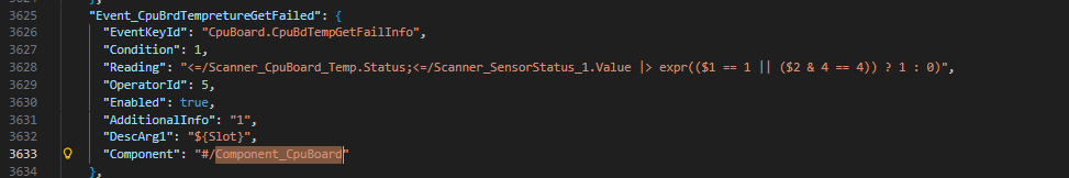 大概流程是, Scanner状态异常,触发CpuBrd过温告警, Component_CpuBoard状态变为异常,然后Event(闭源)组件修改关联的FRU的状态为异常,从而触发Fru_CpuBoard.Health异常,最终导致产生电子标签告警.