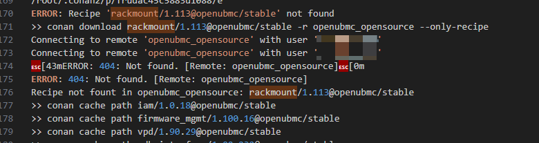 ERROR: Recipe 'rackmount/1.113@openbmc/stable' not found