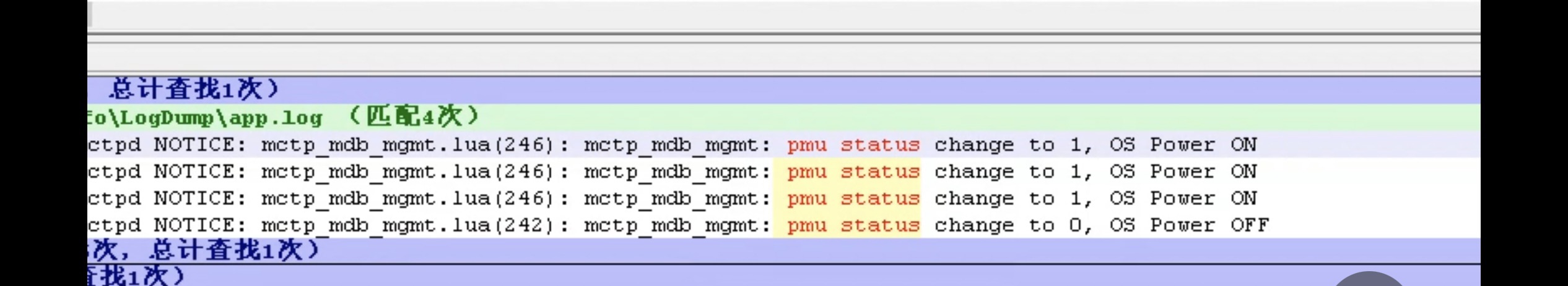 | 查看PMU状态变更 | grep "pmu status change" app.log |