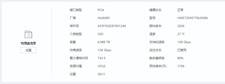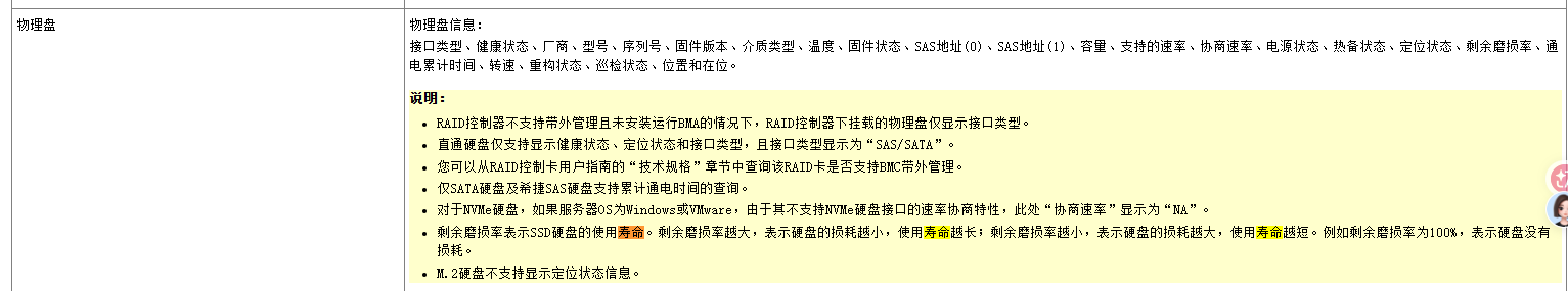 | 1. 缺少长江存储硬盘的寿命换算模型 | 系统可能依赖 RAID 卡或 BMC 驱动根据厂商特定算法将“磨损率”转为“剩余寿命(天/月)”。但目前仅华为、三星等主流厂商被适配。 |