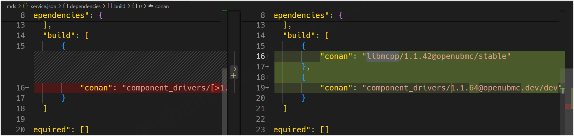 - 2.1 component_drivers版本不一致:因为manifest使用的devmon的user/channel为openubmc/stable,devmon构建有检查component_drivers的user/channel是否与自己的一致。只能参照component_drivers,也把devmon/1.1.25 clone下来本地构建,但又遇到下面问题。
