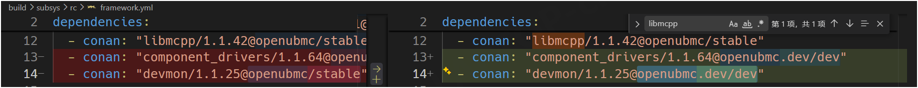 - 修改manifest的framework.yml和hardware.yml中component_drivers对应的user/channel为openubmc.dev/dev
