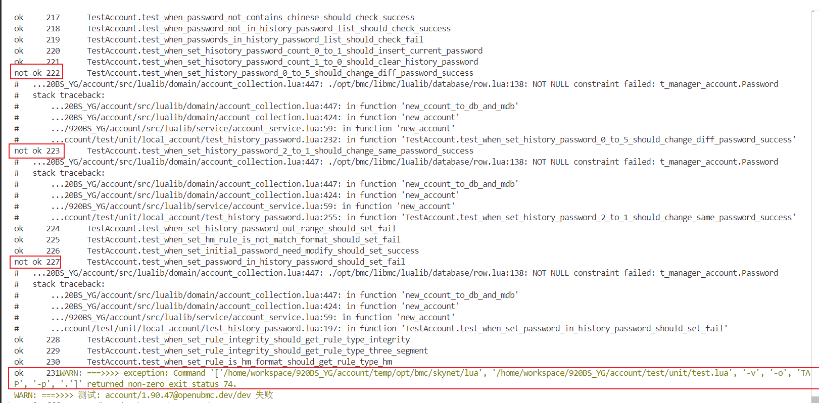 根据您提供的详细错误日志和上下文信息,我们对 account 组件在执行单元测试(UT)时出现的 NOT NULL constraint failed: t_manager_account.Password 错误进行了全面分析。以下将从问题定位、根本原因、修复方案以及后续预防措施四个方面进行系统性解答。