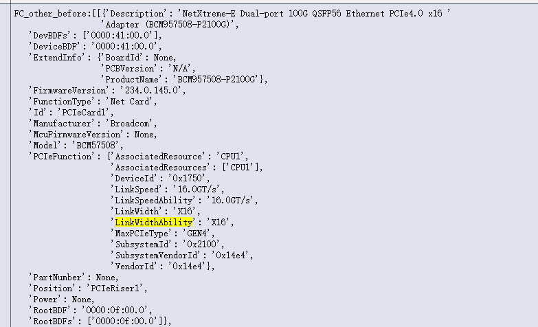 PcieAddrInfo 配置示例:"PcieAddrInfo_BCM957508": {