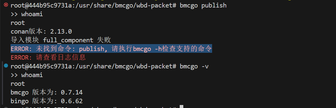 - bmcgo publish打包定制白牌包,提示:ERROR: 未找到命令: publish, 请执行bmcgo -h检查支持的命令