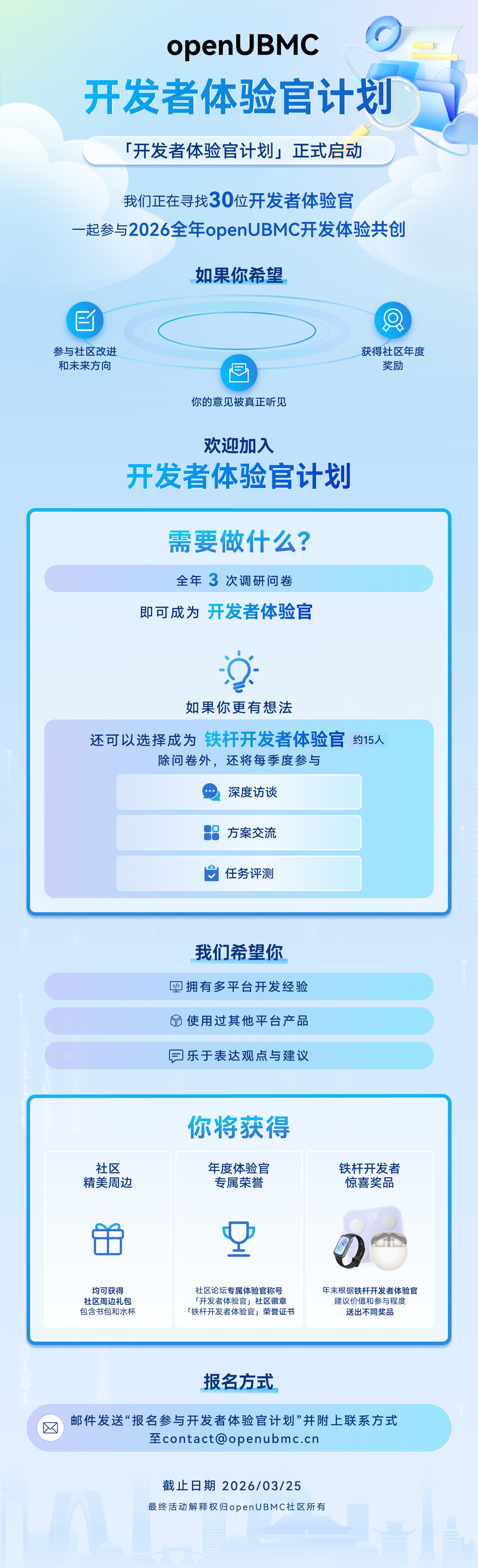 | 参与openUBMC内测活动,赢取精美礼品 | 12 | 330 | 2025 年5 月 23 日 | |