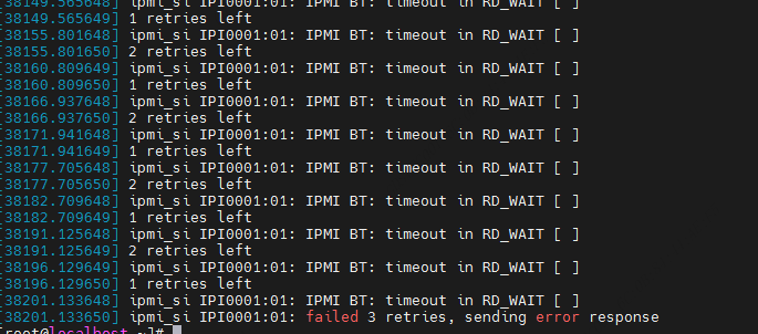 1、带内执行ipmitool lan print 1命令卡顿,同时os内报IPMI BT:timeout in RD_WAIT