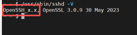-V 模糊输出)strings /usr/sbin/sshd | grep "OpenSSH" | grep -v "OpenSSH\x00"