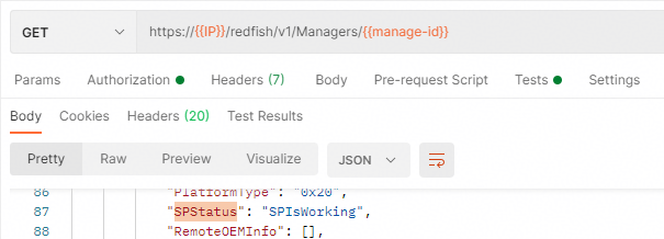 3、如果提示需要检查IBMC状态,可以尝试查询下这个接口,在返回值里搜索下“SPStatus”