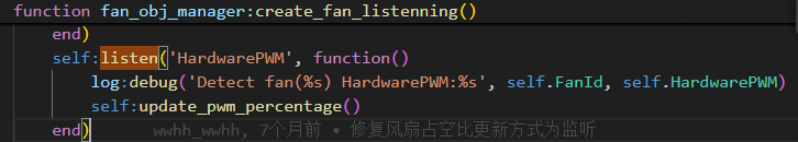 现在发现设置50%转速后,通过资源树发现HardwarePWM属性很快就变化了,但是一直没有执行listen里面的流程,listen是被阻塞了?