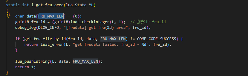 FRU_MAX_LEN常量固定为2048字节进行读取和写入操作static int l_get_fru_area(lua_State *L)