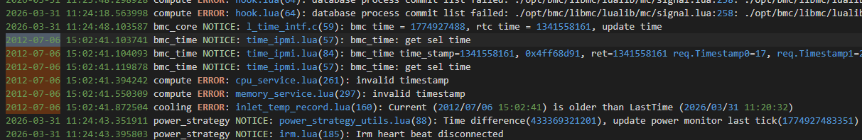 但是这里rtc时间是我修改的1341558161(2012-07-06 15:02:41),bmc时间是1774927488(2026-03-31 11:24:48),这条日志的意思我理解是从rtc芯片同步时间到bmc吧
