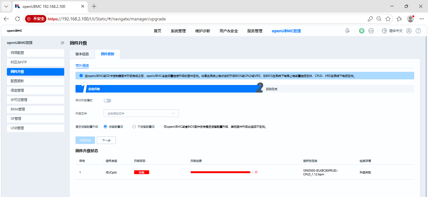 通过web升级riser卡的cpld固件S950X00-IEU(BC85PRUE)-CPLD_1.12.hpm