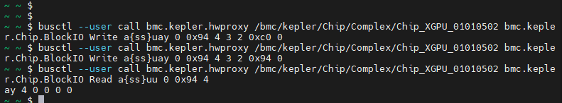 busctl --user call bmc.kepler.hwproxy /bmc/... Read a{ss}uu 0 0x90 1; sleep 0.1