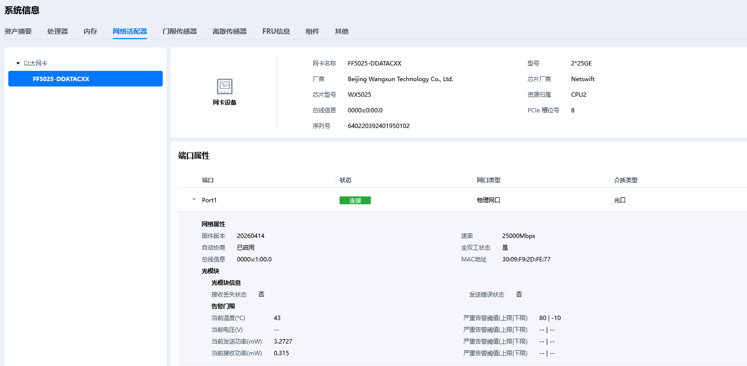 带内通过ibma获取的网卡信息和光模块信息无法显示到web网络适配器上。