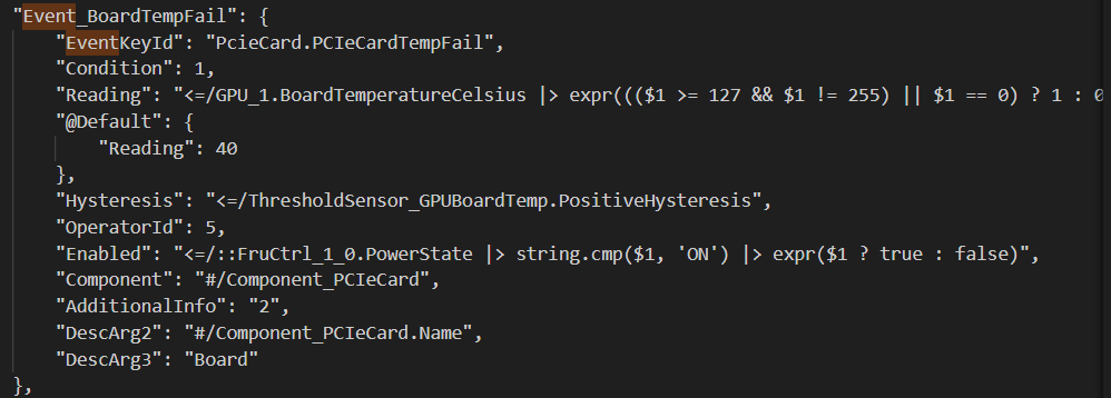 Enabled 和 Reading 独立更新,哪个先变取决于其数据源变化时间。Enabled:若 Enabled = false,无论 Reading 是否满足条件,事件都不会触发。<=/ 是动态依赖语法:用于实现属性间的自动更新与联动。<=/ 调用,属性必须支持变更通知(emits-change)、路径可访问、非 volatile。Enabled),确保其依赖的属性配置了 emits-change;<=/,因其更新可能非实时;bmc debug 工具监听属性变化事件。<=/ 的说明在您提供的配置中,事件 Event_BoardTempFail 的两个关键属性使用了动态依赖: