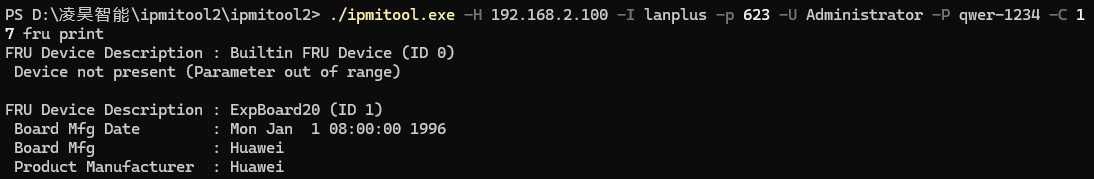 ipmitool fru print 显示数据缺失或无效输出中: