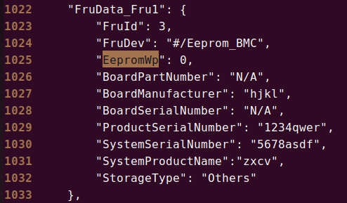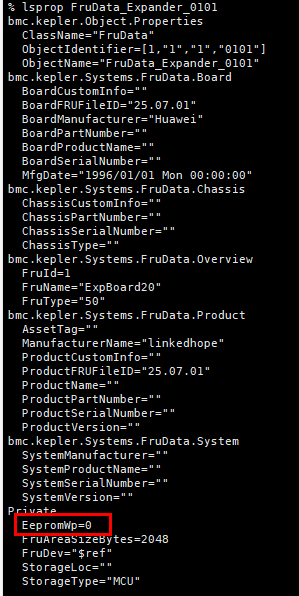 正常来说是要进行配置的,要不然BMC也不知道哪个是开哪个是关闭,可以看看下面这个文档CSR配置字典之FruData类 | 文档中心 | openUBMC ,除了这个写保护问题,还有一个情况你的StorageType的问题,如果解析失败,是会默认显示Huawei,Huawei的,然后通过ipmitool写入的内容是没有实际写入到eeprom里面的