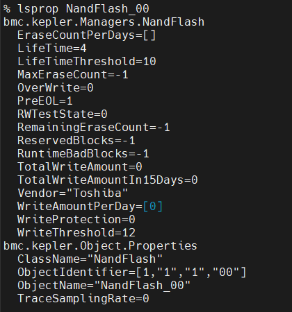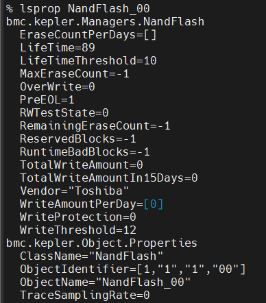 lsprop NandFlash_00 # 检查 LifeTime 是否正常