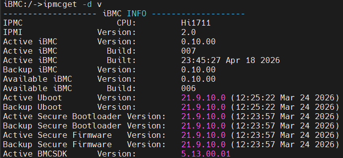 ipmcget -d v # 查看版本一致性
