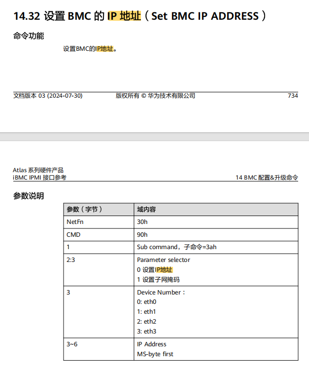 这是一个 IPMI RAW 命令,属于低级别、厂商自定义(OEM)命令。ipmcset 工具(推荐)对于华为系或兼容 iBMC/openUBMC 的系统,建议优先使用 ipmcset 而非 RAW 命令来修改 IP。