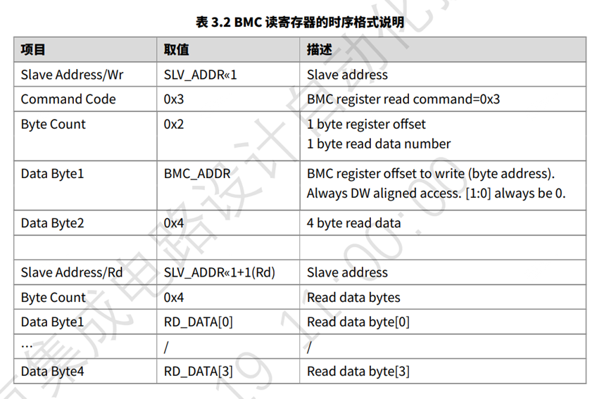 chip:Read(...) 接口强制要求传入 cmd 和 len 参数。cmd = 0 传入仍失败,说明底层驱动未适配此特殊时序。| 对比项 | 厂家要求 | 当前BMC实现 |