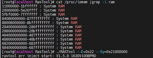 1.用例与实际预期不符,./RASTool --E=0x1f --Sy=0x5fbf0000 注入CE故障,是无法触发0x01000017 UCE告警的,请审视用例与预期结果;