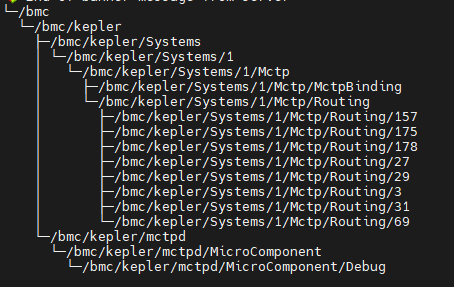 Prepare for Endpoint Discovery 和 Endpoint Discovery 命令,以发现连接在其上的 MCTP-capable 设备(如支持 MCTP over PCIe 的网卡)。Routing Information Update 或类似机制,将自己所管理的下游设备的路由信息发送给 BMC。mctpd 守护进程接收到这些路由信息后,会在 D-Bus 上创建对应的 Routing 对象,路径形式为:/bmc/kepler/Systems/1/Mctp/Routing/<phy_addr>