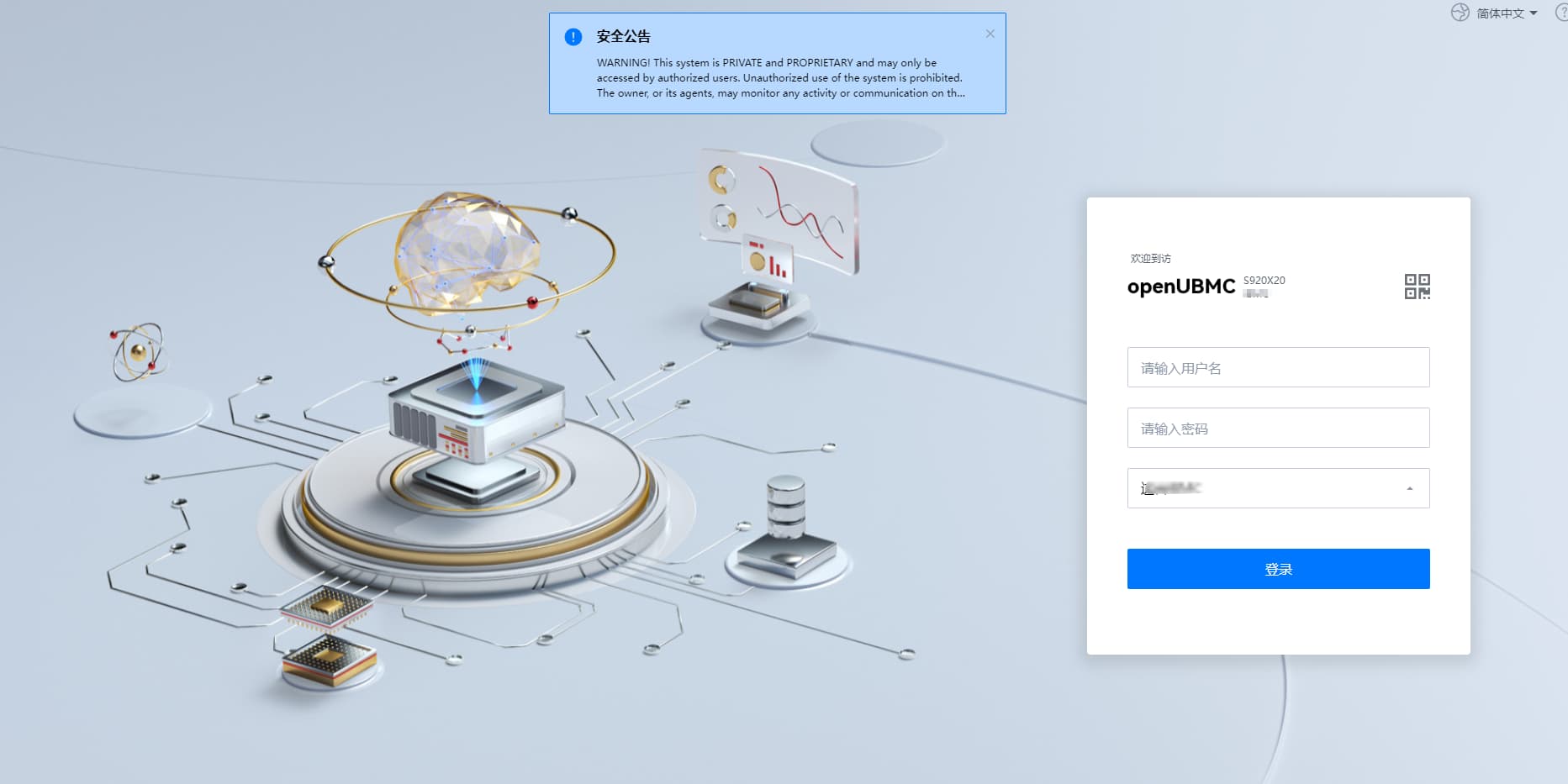 在浏览器中输入https://<ip>:100443 即可进入Web登录界面,通常该页面会在启动Qemu后6~10分钟左右完全显示,视宿主机配置而定。