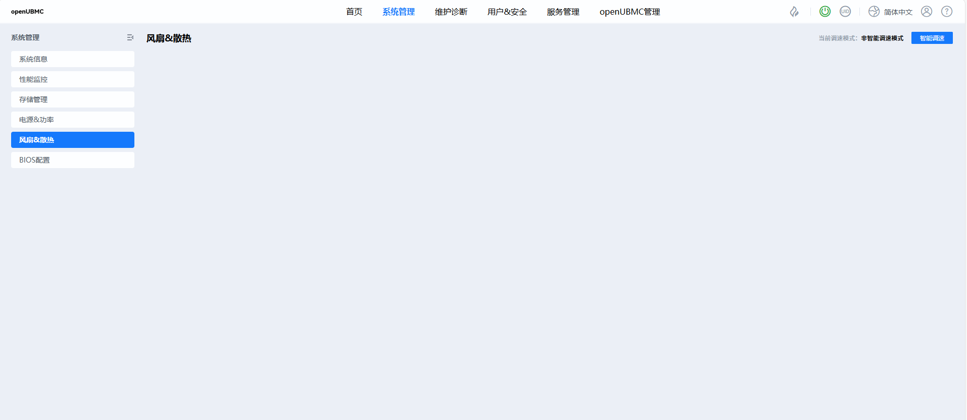 前端如果点击“风扇&散热”后点击其他选项如“BIOS配置”,再点击“风扇&散热”页面获取正常。