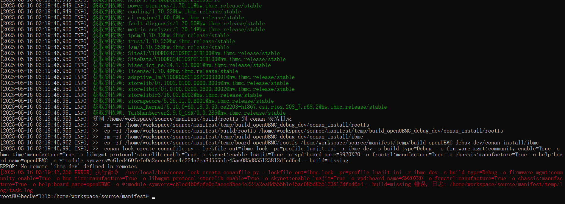 bingo build -b openUBMC -r openubmc_dev - 不指定远端conan仓的地址,直接用本地conan缓存的数据编译,编译失败,还是会去找远端conan依赖。
