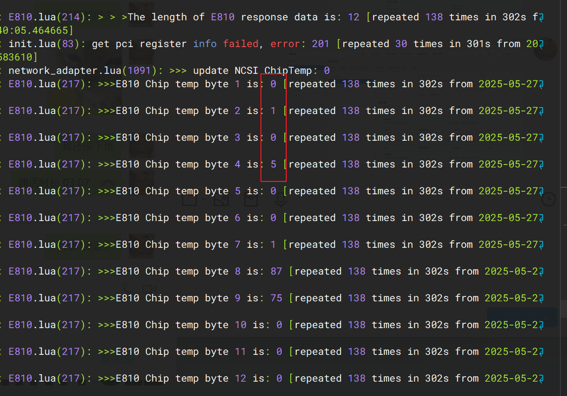 需要在社区版本上适配 Intel 的 E810 网卡,该网卡支持 NCSI 协议获取网卡信息,对该网卡进行了SR 的配置,但由于当前 network_adapter 组件中支持的 CX5、CX6…等芯片不满足 Intel E810 网卡的芯片类型,需要针对 E810 进行单独适配,于是在 network_adapter 组件的 hardware_config 目录下新增了一个 E810.lua 用于该网卡的带外信息的获取。